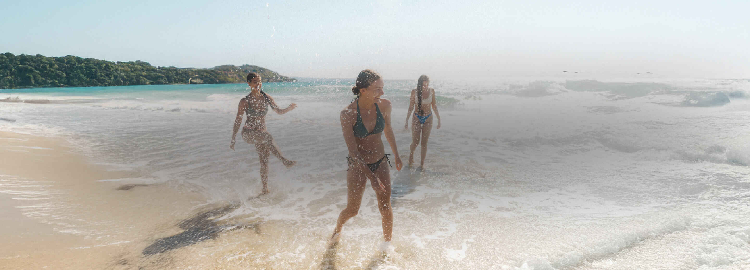 Beim Badeurlaub solltest Du Dich über die Gegebenheiten vor Ort informieren: Gibt es Strände mit flachem Wasser, in dem die Kleinen sicher planschen können? An der Adria ist das kein Problem, an der Atlantikküste brechen sich hohe Wellen. Aber auch dort findest Du an manchen Orten geschützte Gezeitenbecken. Zu guter Letzt entscheiden auch die Wassertemperaturen: lieber tropisch warm im Indischen Ozean oder gemäßigt im Mittelmeer?