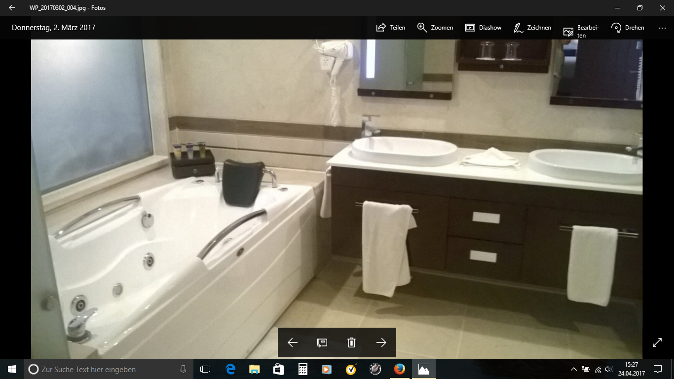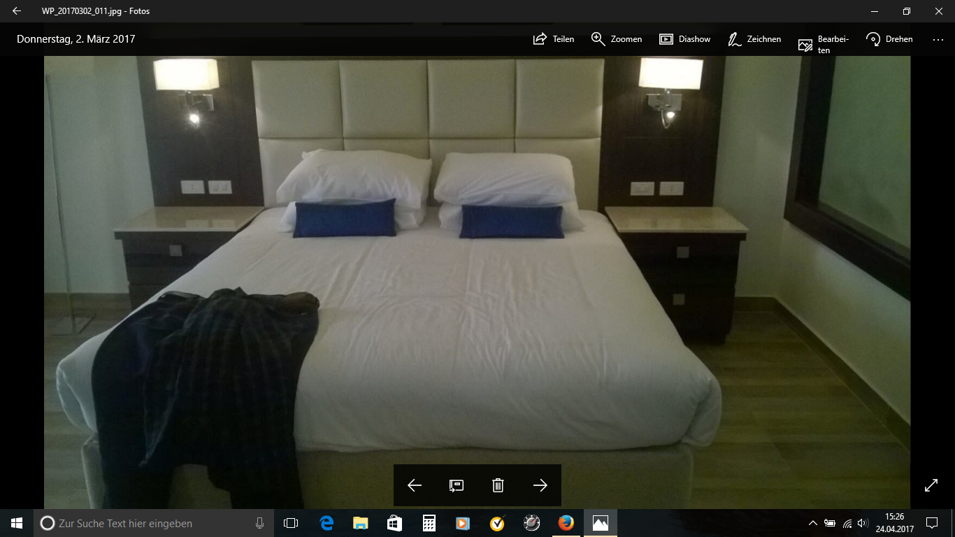 Hallo, die Bilder sind vom Familienzimmer, wir waren anfang März in diesem Hotel und hatten ein Doppelzimmer gebucht, wir bekamen dann ein Familienzimmer für die erste Nacht, da alle DZ ausgebucht waren. Es sind zwei Schlafzimmer mit Flur und Bad ca. 90qm alles in allem.