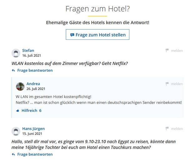 früher konnte man mit anderen Urlauben kontakt aufnehmen,falls man zu einem Hotel noch fragen hat.