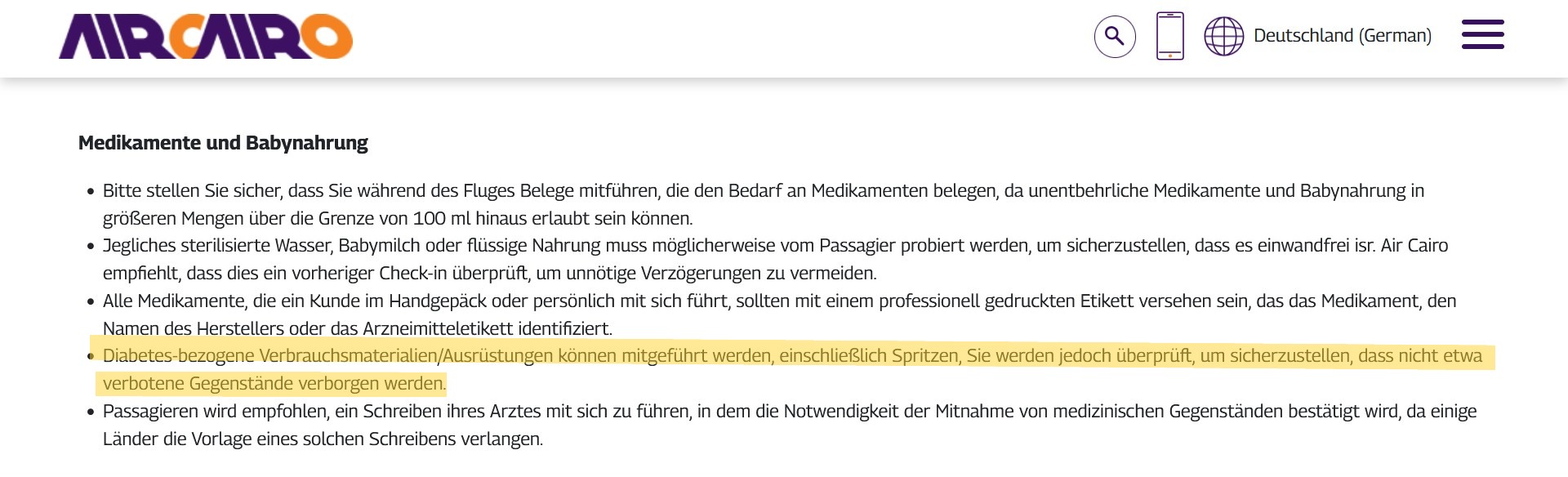 Weiß zufällig wie es bei AIR CAIRO ist mit Insulin Pen ?