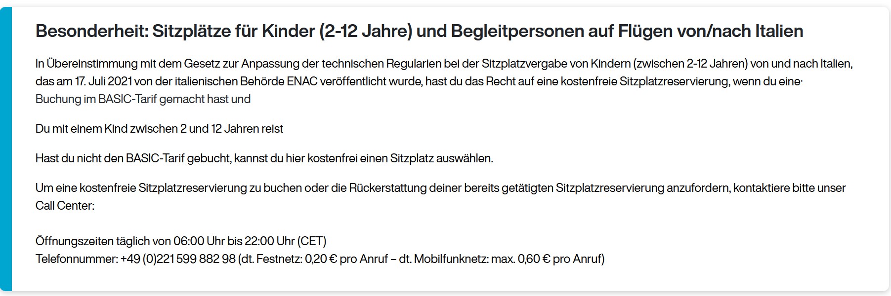 Bitte habe Verständnis dafür, dass folgende Personengruppen aufgrund von Sicherheitsauflagen der Behörden nicht in der Exit-Reihe am Notausgang sitzen dürfen: