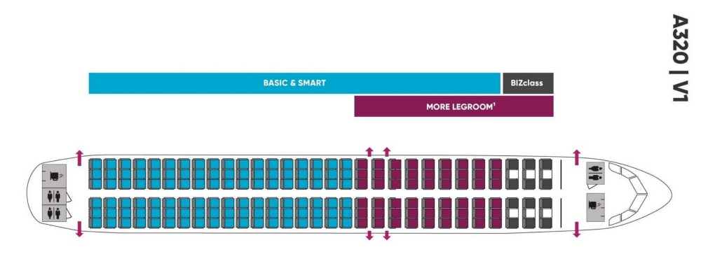 Nnunja, fliegt ein A320 der AVION EXPRESS fuer Eurowings gibt es in den vorderen Reihen leider keine mehr Beinfreiheit, nut in der BizClass...