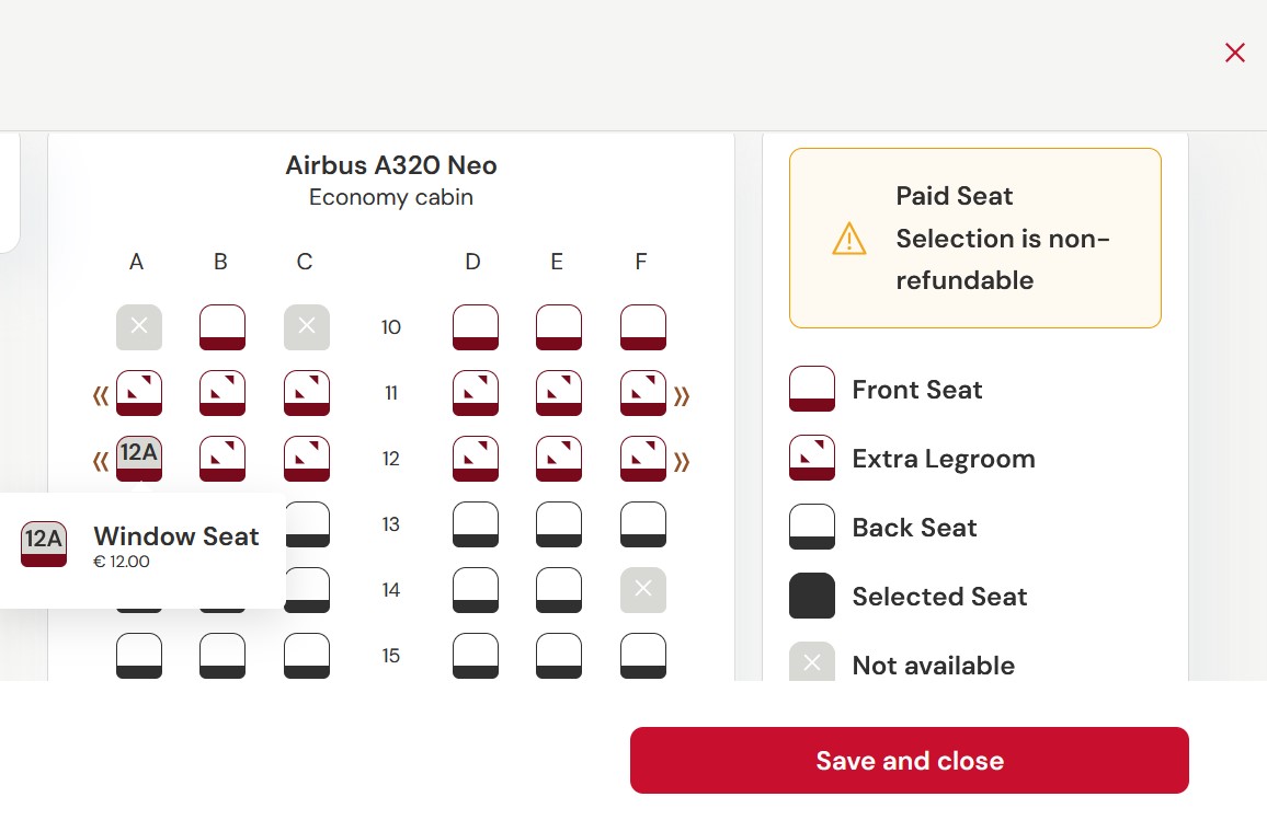 Die Reservierung kostet von 6.-€ und 12.-€ mit mehr Beinfreiheit, die musst du aber nicht machen und der Flughafen Check-in ist kostenlos.
