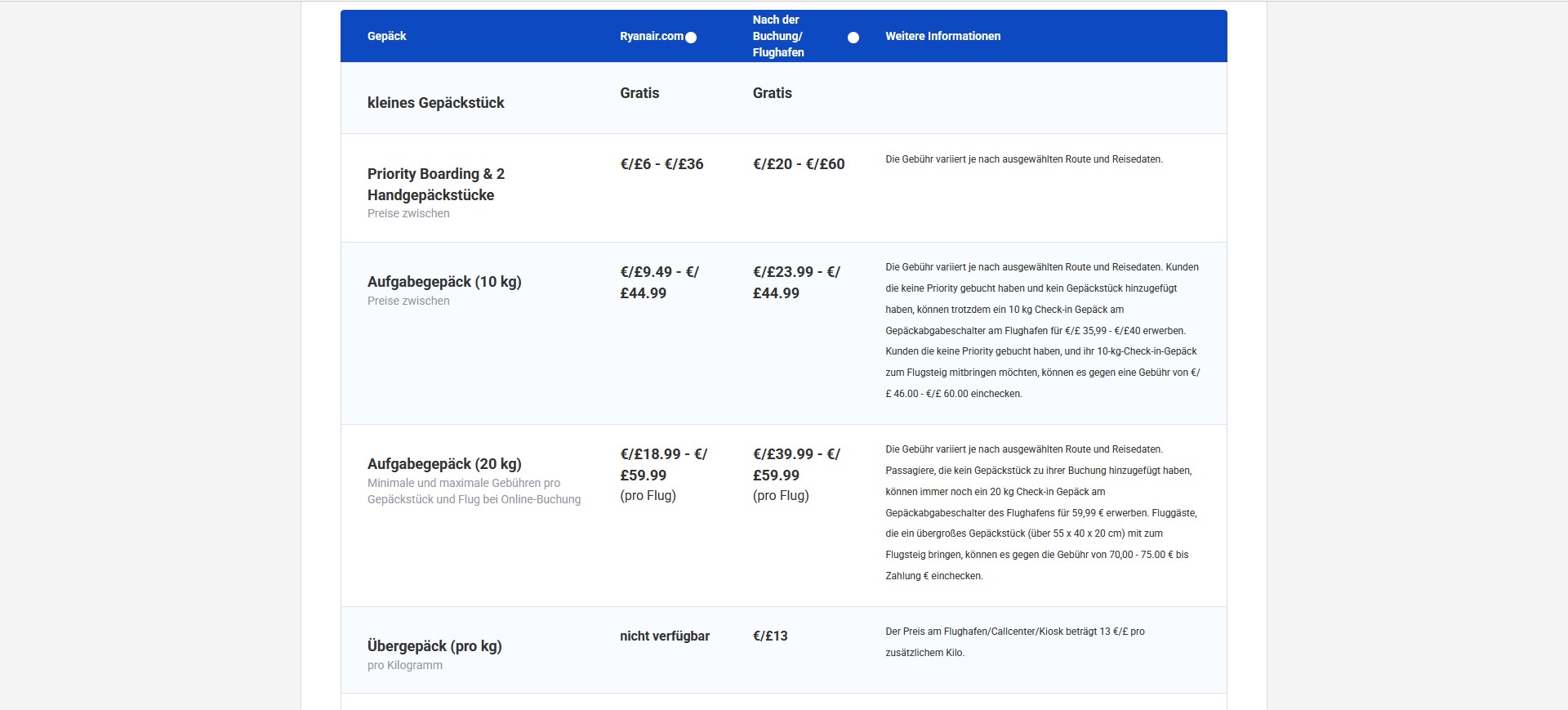 Hab ich nicht gefunden, nur zusätzliches Handgepäck, was ich nicht benötige, wohl aber 1-3 Kilo mehr für meinen Koffer