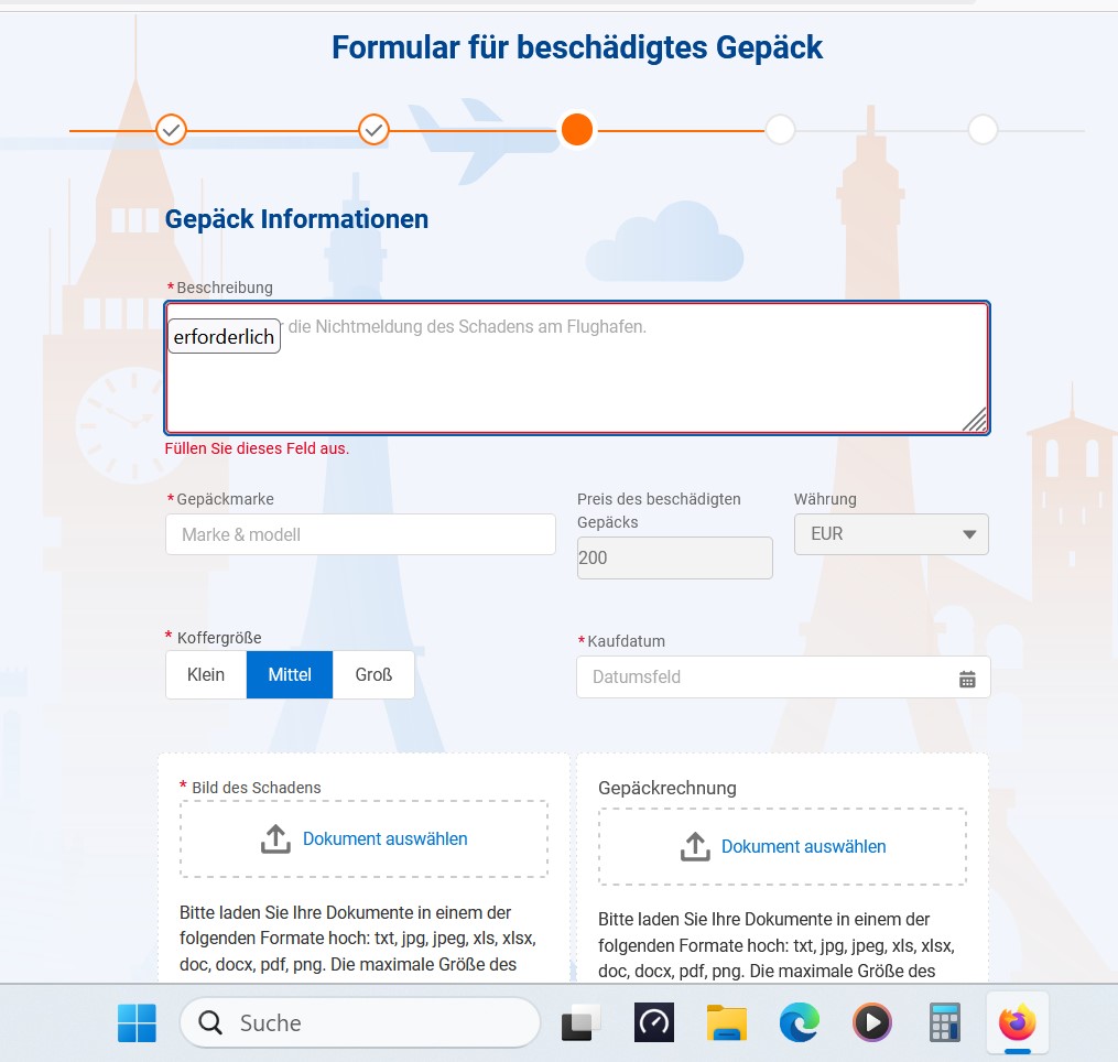 Tatsächlich fülle ich alle Felder aus und achte bei den Anhängen auch auf die passenden Dateiformate und auf die Größen.