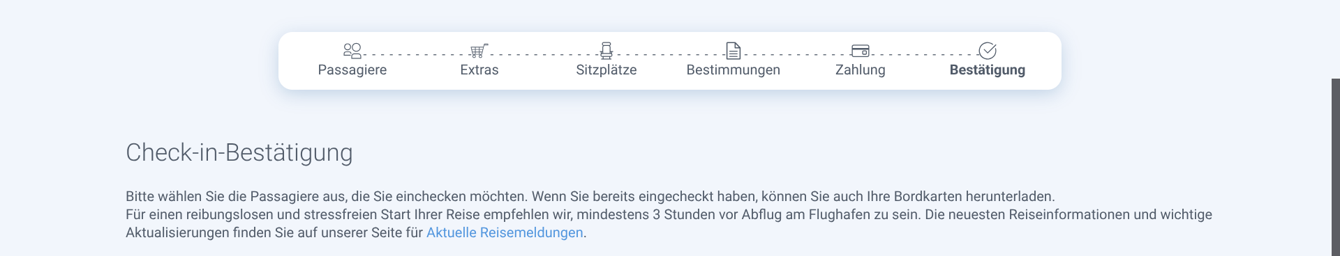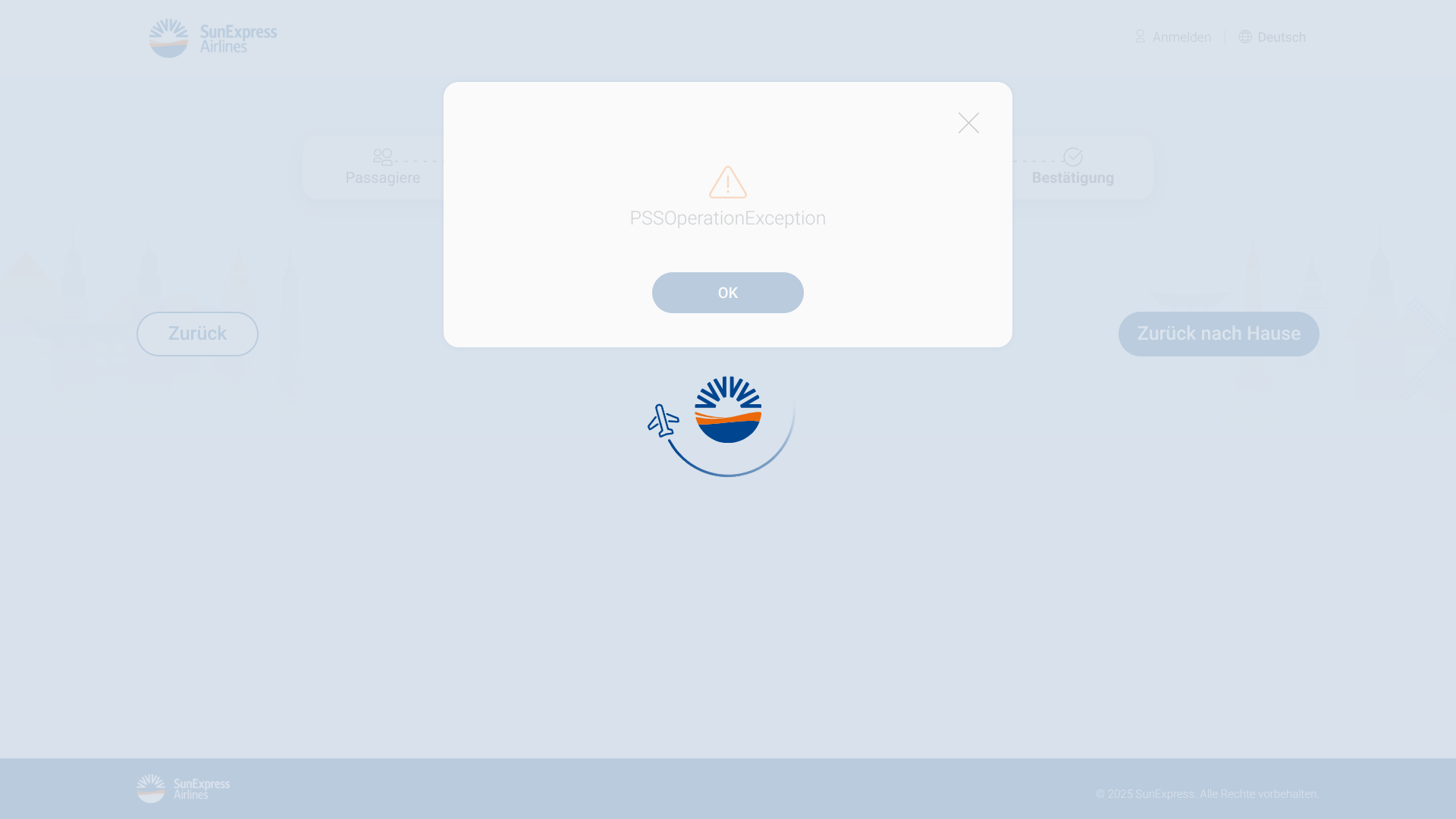 Hallo zusammen. Online checkin durchgeführt ohne zusätzlich Sitze zu reservieren, Mail erhalten mit dem Betreff your Reservation Details. Am Ende des Online Checkins läd die Seite nicht weiter. Meldung "PSSOperationException". Nach klicken auf print E-Ticket in der Mail, gelange ich wieder auf die Homepage von Sunexpress, nach Login mit Buchungsnummer kann ich den Online Checkin wieder erneut ausführen. Neue Mail, gleiches Problem. Also Endlosschleife. Wie komme ich an meine E-Tickets und wie sehe ich welche Plätze mir zugewiesen worden sind? Vielen Dank.
