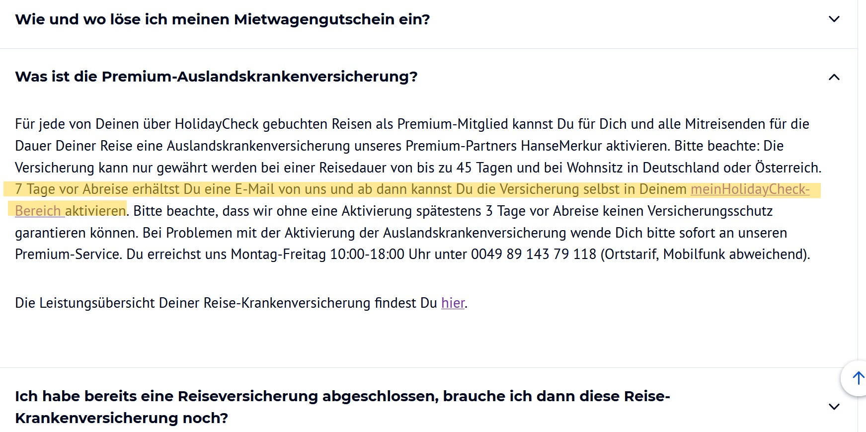 Ich habe für einen Urlaub dieses Holidaypremium gebucht und vor mehreren Wochen bezahlt.