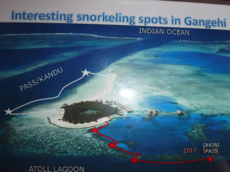 Hausriff auf Gangehi ist kein herkömmliches inselumrundendes Riff, sondern geht in verschiedene Richtungen/Kanäle über, daher aber auch ganz interessant.