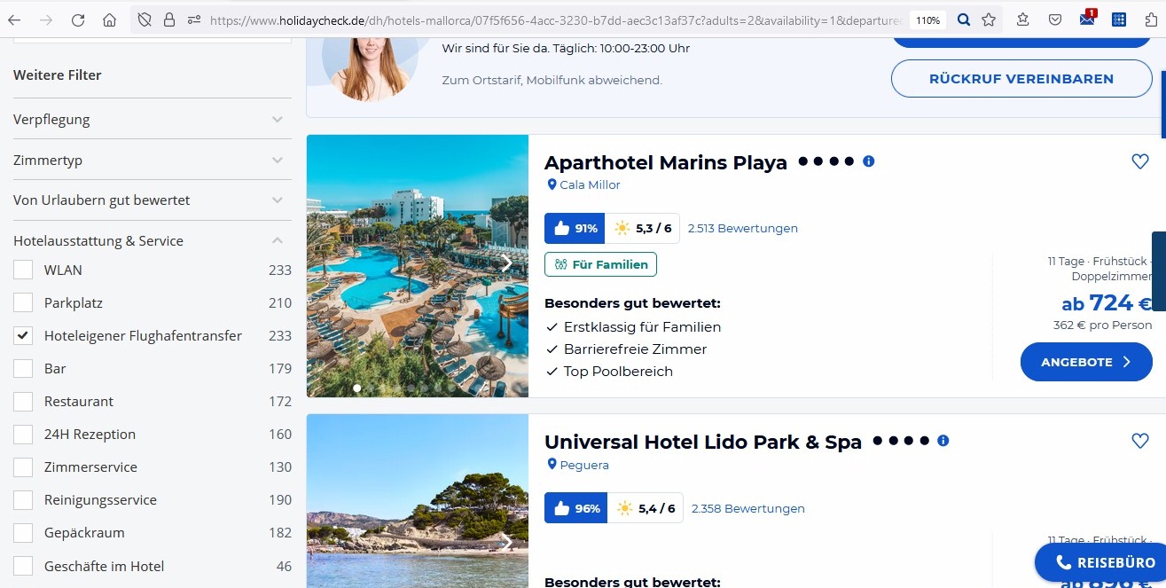 gibt es Hotels auf Mallorca die einen Transfer vom Flughafen in der Buchung inklusive haben oder eine Hotelsuche inklusive Flughafenransfer zu dem Hotel?