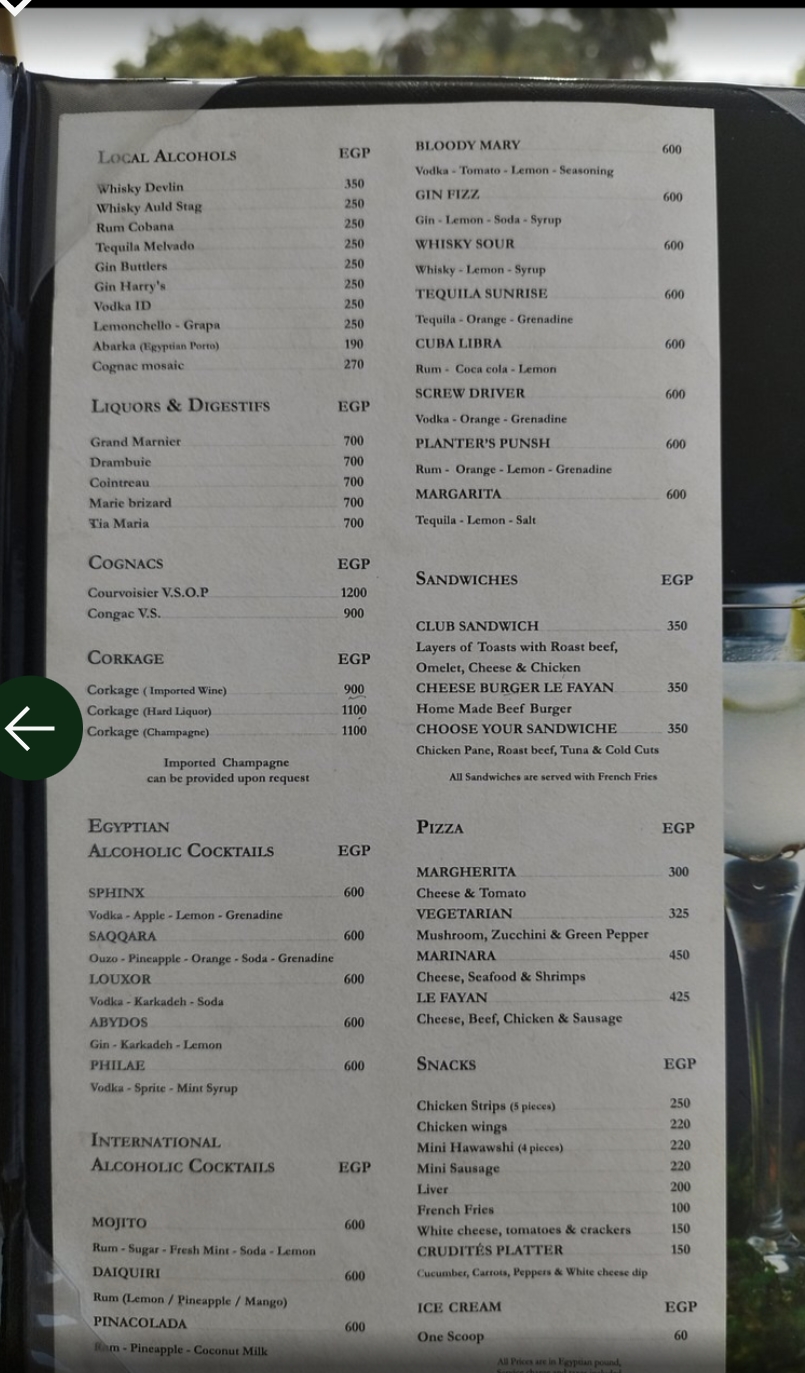 Getränkekarte der MS Le Fayan von September 2024.
