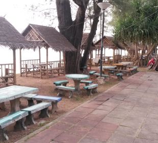 Das Haadson Resort am Bangsak Beach ist nicht direkt am Strand gelegen sondern durch eine allerdings nur wenig befahrene Strasse davon getrennt. Entlang der Strasse sind ein paar very basic Local Restaurants und sonst nix, zum nächsten Ort Bang Niang fährt man mit einem Taxi eine knappe halbe Stunde. Der Strand dort ist übrigens am Wochende ein sehr beliebtes Ausflugsziel für zahlreiche Thai-Familien mit Kind und Kegel.
