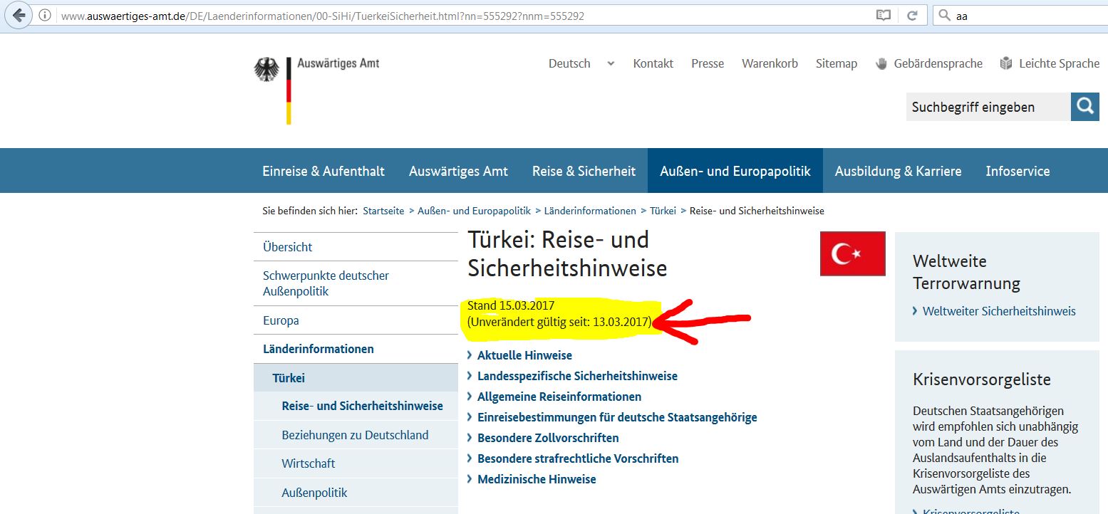 (Unverändert gültig seit: 13.03.2017)" - hier auf der Website des Auswärtigen Amtes nachzulesen