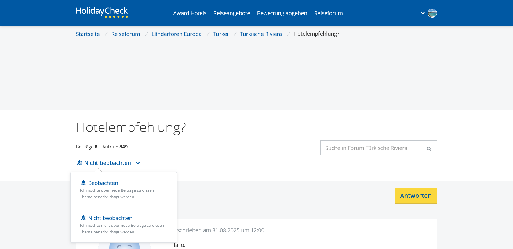 ich überlege, im Oktober evtl. noch mal für 1 Woche in die Türkei zu fliegen. Ich war noch nie dort, möchte aber gerne noch mal in die Sonne.