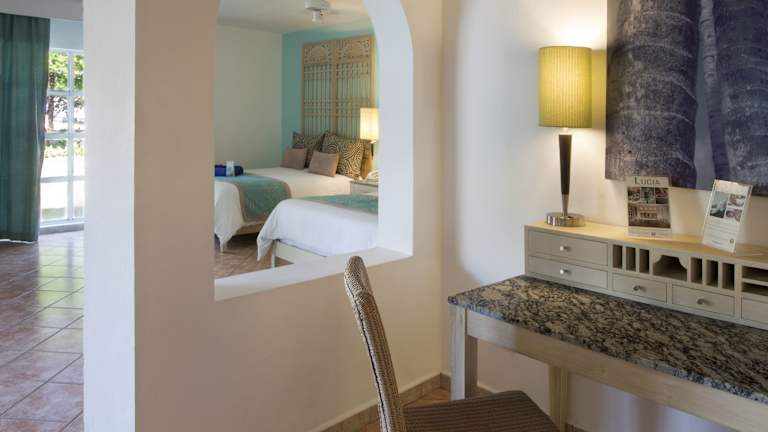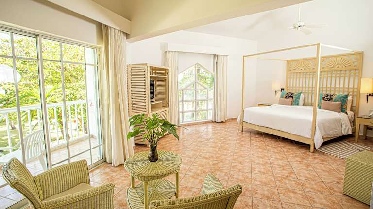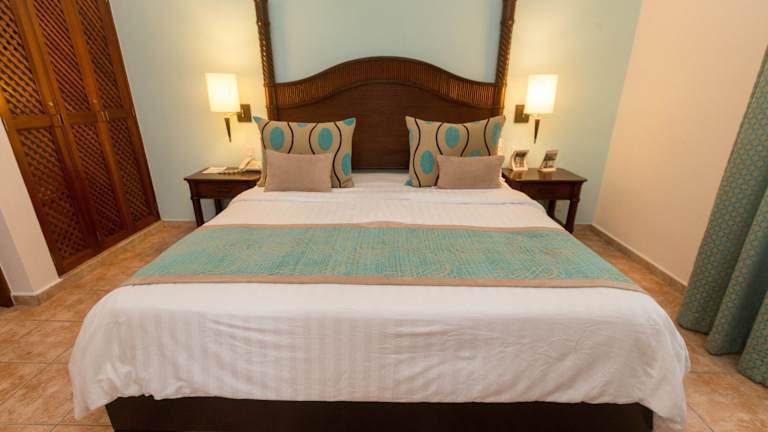 Die Zimmer sind hell und modern gestaltet und verfügen über Annehmlichkeiten wie Klimaanlage, Kabel-TV, eine täglich aufgefüllte Minibar, Kaffeezubereitungsmöglichkeiten und einen möblierten Balkon. Es sind verschiedene Zimmertypen verfügbar, darunter Juniorsuiten und Doppelzimmer.