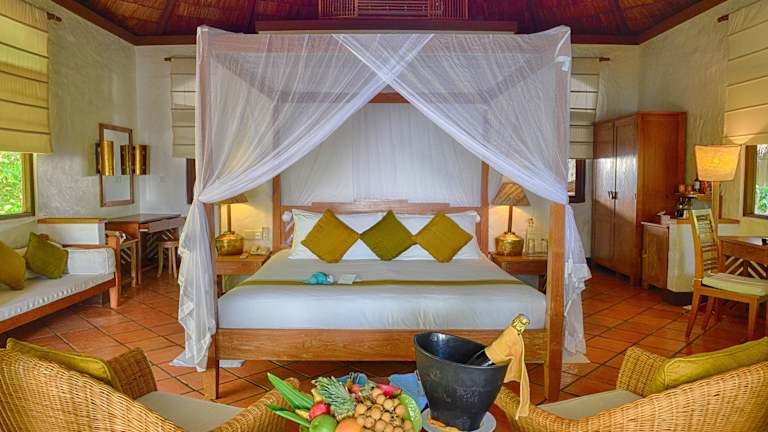 Die Villen sind stilvoll eingerichtet und verfügen über eine eigene Terrasse mit Sitzgelegenheiten im Freien. Die Ausstattung umfasst Klimaanlage, Minibar, WLAN, Safe und private Badezimmer mit kostenfreien Pflegeprodukten. Es gibt verschiedene Typen, darunter Beach Villen, Lagoon Villen, Sunset Lagoon Villen und Deluxe Villas, die jeweils unterschiedliche Ausblicke und Annehmlichkeiten bieten.