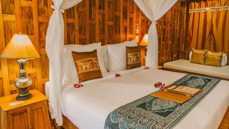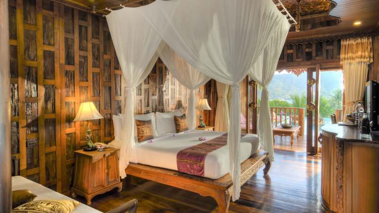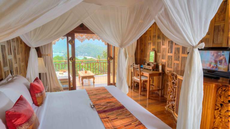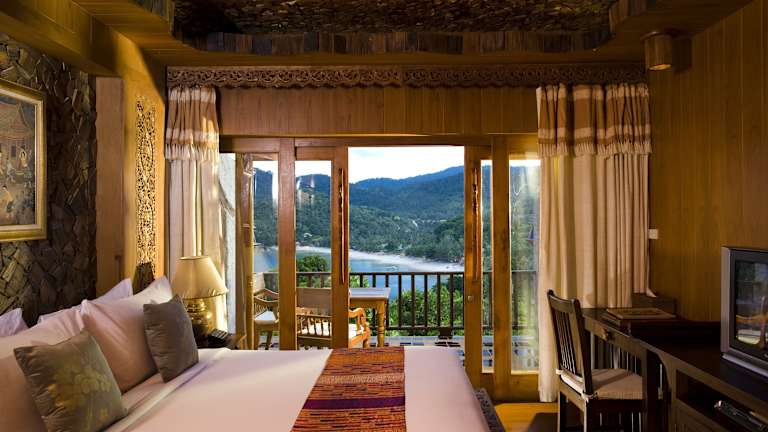 Das Santhiya Koh Phangan Resort and Spa bietet eine Vielzahl von Zimmern, die alle stilvoll eingerichtet sind und über eleganten Teakholzmöbeln und klassischem thailändischem Dekor verfügen. Die Zimmer sind klimatisiert und verfügen über Annehmlichkeiten wie Kabel-TV, DVD-Player und Minibar. Einige Zimmer bieten auch eine Whirlpool-Badewanne für ultimative Entspannung. Die Unterkünfte befinden sich auf einer Klippe und bieten einen atemberaubenden Blick auf das Meer oder den Garten.