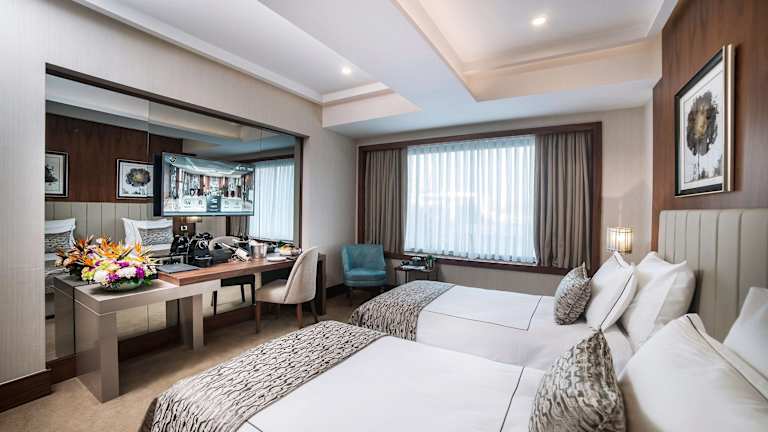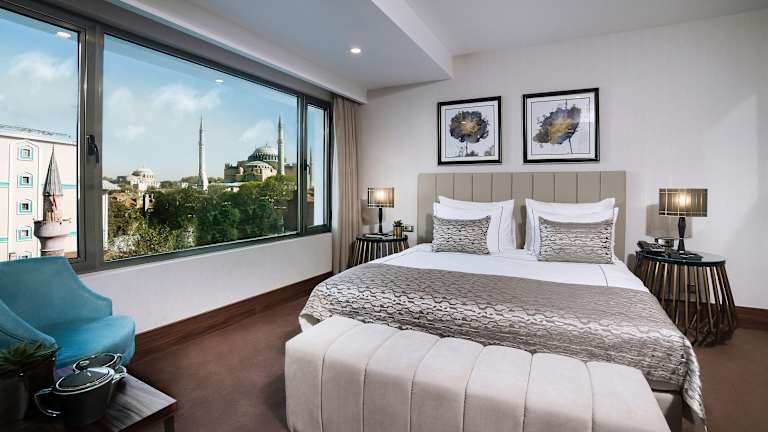 Das Vogue Hotel Supreme Istanbul bietet komfortable und klimatisierte Zimmer mit modernen Annehmlichkeiten. Jedes Zimmer verfügt über einen Flachbild-Sat-TV, einen Wasserkocher, eine Dusche, einen Haartrockner und einen Kleiderschrank. Einige Zimmer bieten auch einen Blick auf die Hagia Sophia.