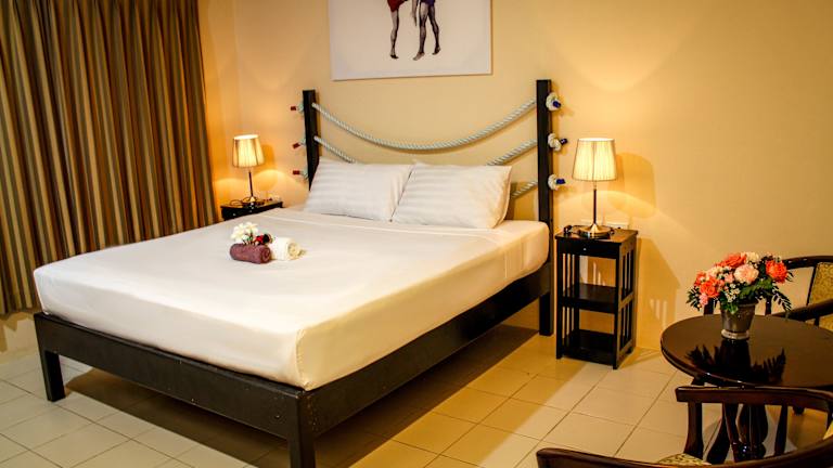 Die klimatisierten Zimmer sind hell und mit dunklen Holzmöbeln eingerichtet. Sie verfügen über einen Balkon, Kabel-TV, einen Safe und einen Kühlschrank. Jedes Zimmer hat ein eigenes Bad mit Dusche. Gegen Gebühr kann ein Zustellbett bereitgestellt werden. WLAN ist in den Zimmern kostenfrei.