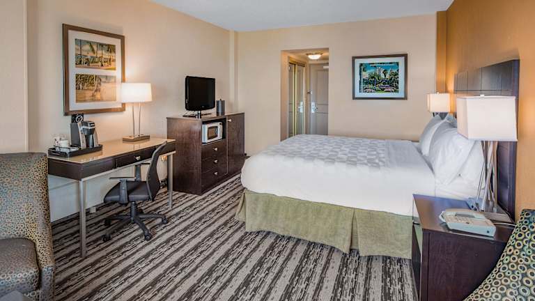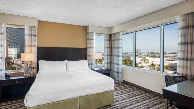 Die Zimmer im Holiday Inn Hotel Port of Miami-Downtown bieten Ihnen Komfort und Bequemlichkeit während Ihres Aufenthalts. Jedes Zimmer verfügt über einen Flachbild-TV und ein eigenes Badezimmer. Einige Zimmer bieten einen herrlichen Blick auf die Biscayne Bay und einige Suiten sind mit einem Sofa ausgestattet. Kostenloses Highspeed-WLAN steht Ihnen in allen Zimmern zur Verfügung.