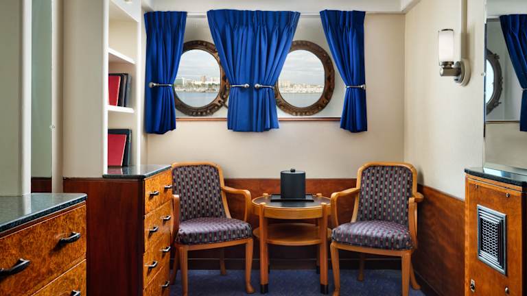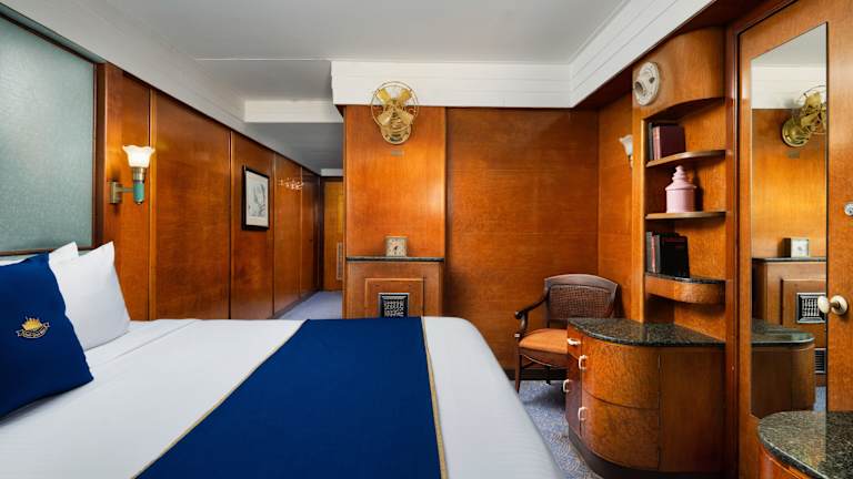 Die Zimmer im Queen Mary Hotel sind eine Hommage an die Vergangenheit des Schiffes und bieten den Gästen ein einzigartiges Erlebnis. Die 346 originalen Erste-Klasse-Kabinen und 9 Suiten sind mit reichhaltigen Holzvertäfelungen, Art-Déco-Einbauten und Originalkunstwerken ausgestattet. Jedes Zimmer erzählt eine Geschichte und strahlt den Charme und die Eleganz der alten Welt aus.