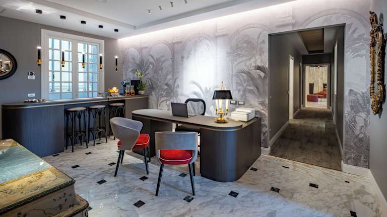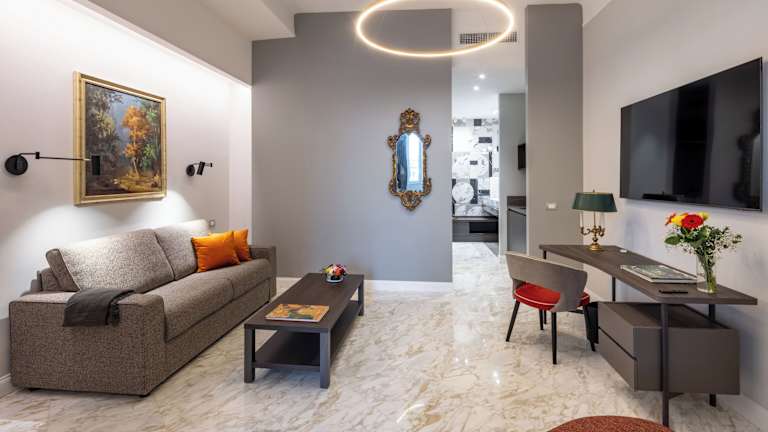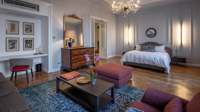 Das Hotel bietet eine Auswahl an Zimmern und Junior-Suiten auf fünf Etagen, die mit einem Aufzug erreichbar sind. Die Zimmer sind mit einer Klimaanlage, einer Heizung, einem Doppelbett, einem Safe, einer Minibar, einem Schreibtisch, einer Tee-/Kaffeemaschine und kostenfreiem WLAN ausgestattet. Die Badezimmer verfügen über eine Dusche, eine Badewanne, ein Bidet, einen Haartrockner und Bademäntel. Nichtraucherzimmer sind verfügbar.