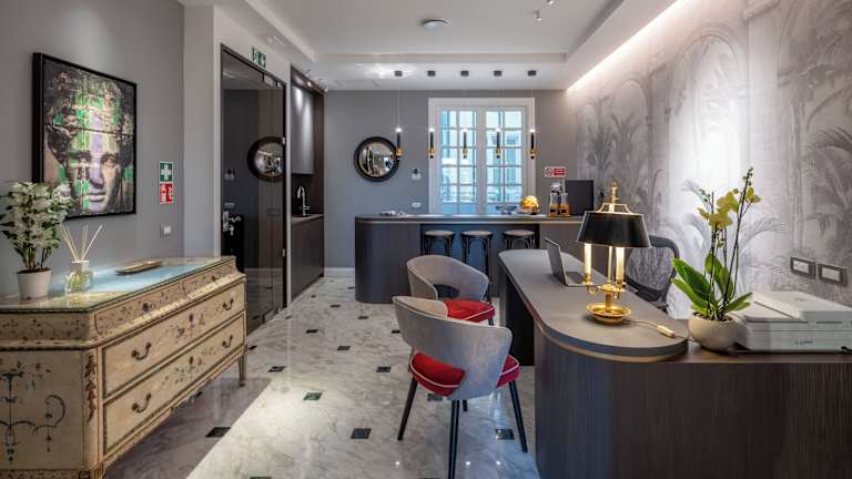 Das Hotel liegt im Herzen Roms, in unmittelbarer Nähe zur Galleria Nazionale d'Arte Antica, dem Palazzo del Quirinale und dem Palazzo Chigi. Auch die Villa Borghese und ihre Galerie sind in der Nähe zu finden. Der Flughafen Rom Ciampino ist etwa 25 km entfernt und der Flughafen Leonardo da Vinci-Fiumicino ist etwa 15 km entfernt.