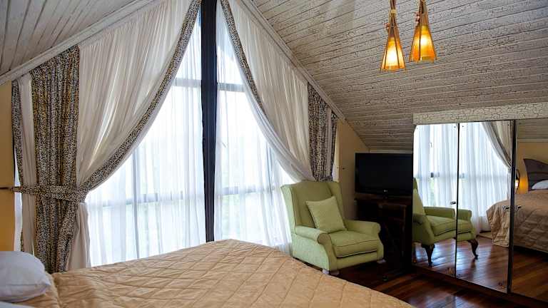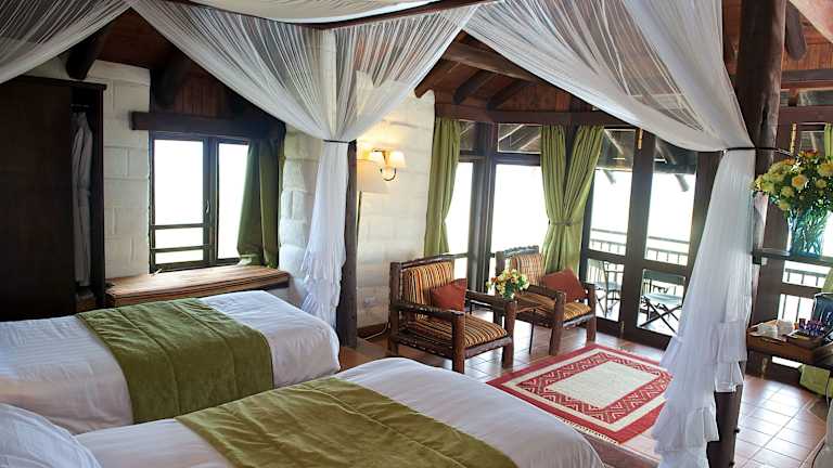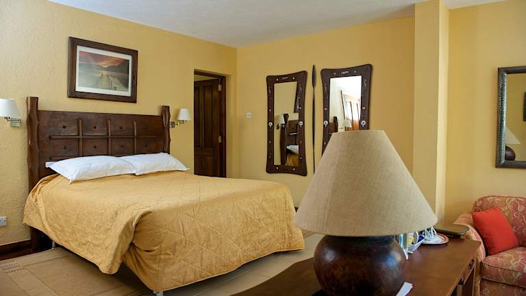 Die geräumigen Zimmer im Great Rift Valley Lodge & Golf Resort sind zum Garten hin ausgerichtet und bieten eine entspannte Atmosphäre. Sie sind mit handgefertigten Holzmöbeln ausgestattet und einige Zimmer verfügen sogar über ein Esszimmer, eine Küche und einen Balkon mit Blick auf das Rifttal.