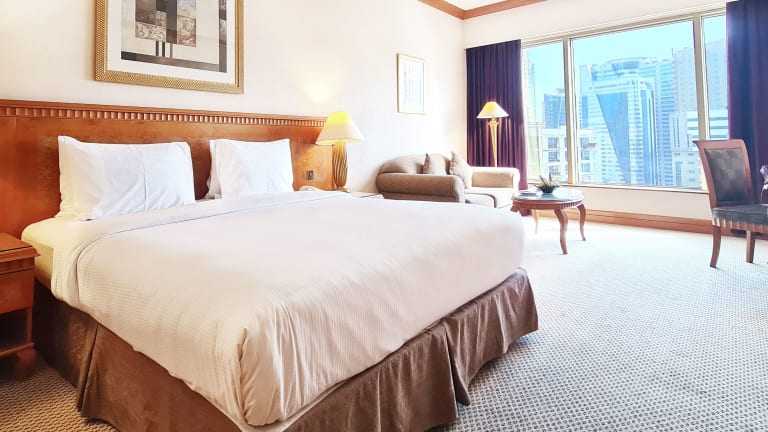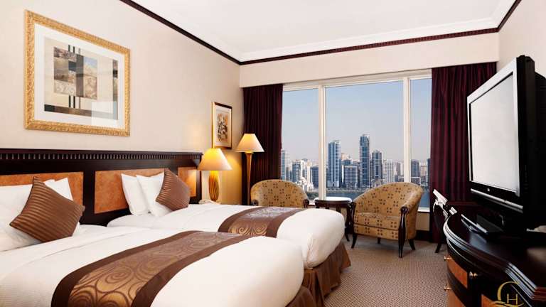 Das Hotel liegt an der Corniche Road mit Blick auf die Khalid-Lagune. Es befindet sich in unmittelbarer Nähe zum Stadtzentrum von Sharjah sowie zu Dubai, das in etwa 10 Minuten mit dem Auto zu erreichen ist. Der internationale Flughafen Sharjah ist rund 7 km entfernt. Weitere Entfernungen umfassen den Strand, der etwa 4 km entfernt ist, und einen Golfplatz in 17,8 km Entfernung.