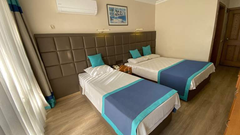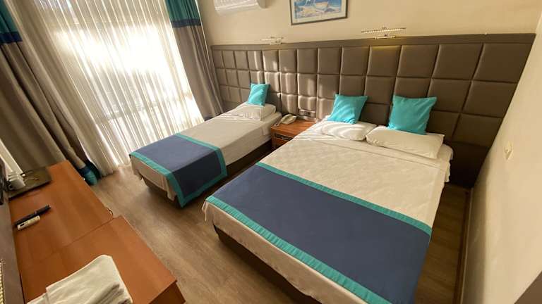 Die Zimmer im Prima Hotel sind in hellen Farben gehalten und bieten eine angenehme Atmosphäre. Sie sind mit klimatisierten und mit Holzmöbeln ausgestattet. Zur Ausstattung gehören eine Minibar, Sat-TV und ein Haartrockner. Die meisten Zimmer bieten zudem einen Balkon mit Blick auf das Mittelmeer.