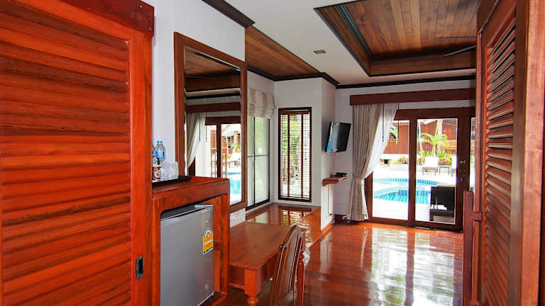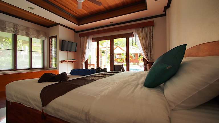 Die Zimmer und Bungalows im Blue Diamond Resort sind geräumig und im traditionellen thailändischen Stil eingerichtet. Jede Unterkunft verfügt entweder über einen Balkon oder eine Terrasse mit Blick auf den Garten oder das Meer. Zur weiteren Ausstattung gehören Kabel-TV, ein Kühlschrank und ein eigener Safe. Jedes Zimmer verfügt zudem über ein eigenes Badezimmer mit Dusche.