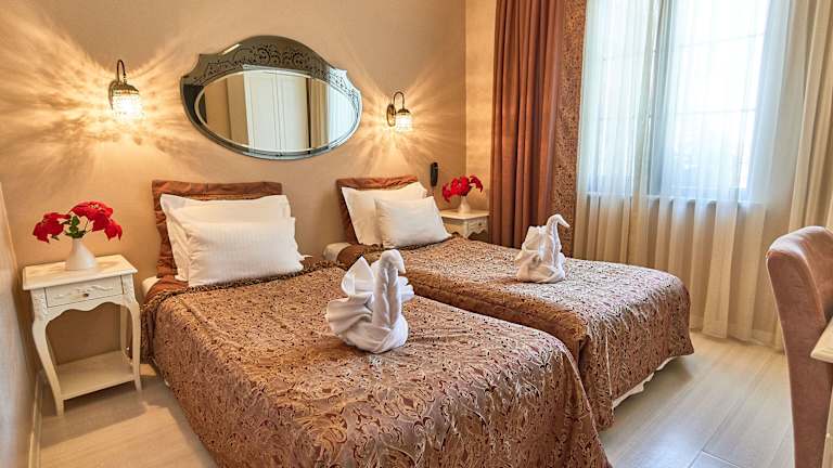 Buchen Sie das Celal Sultan Hotel in Istanbul für einen luxuriösen Aufenthalt mit einem atemberaubenden Panoramablick auf die Stadt und den Bosporus. Das Hotel bietet geschmackvoll eingerichtete Zimmer mit kostenfreiem WLAN und einer Minibar. Genießen Sie türkische Küche auf der Terrasse mit Blick auf die Hagia Sophia oder lassen Sie sich in der gemütlichen Bar mit Cocktails verwöhnen. Das freundliche Personal steht Ihnen rund um die Uhr zur Verfügung und hilft Ihnen gerne bei der Organisation von Ausflügen und anderen Anliegen. Das Hotel liegt in der Nähe vieler beliebter Sehenswürdigkeiten Istanbuls wie dem Topkapi-Palast, der Blauen Moschee und der Hagia Sophia.