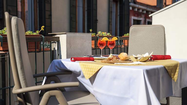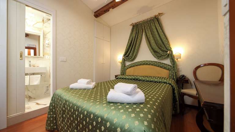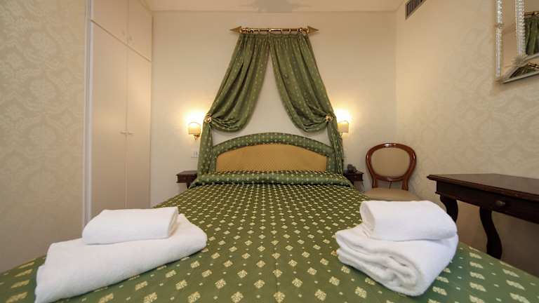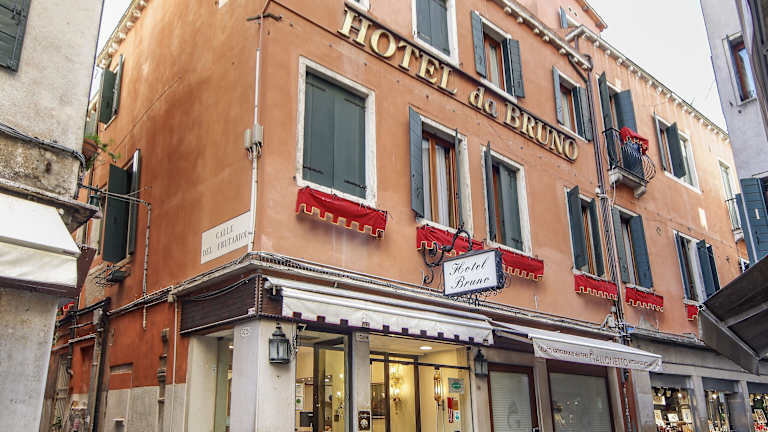 Das Hotel Da Bruno verfügt über 32 Zimmer, die sich auf drei Etagen in einem traditionellen venezianischen Gebäude ohne Aufzug verteilen. Alle Zimmer sind komfortabel eingerichtet und verfügen über ein eigenes Bad. Zur Ausstattung gehören auch eine Klimaanlage, ein Safe und kostenfreies WLAN. Einige Zimmer bieten zudem eine private Terrasse, auf der Sie die Atmosphäre von Venedig genießen können.