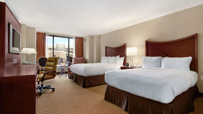 Das Hilton Washington Dulles Airport Hotel bietet 449 Nichtraucherzimmer auf 5 Etagen. Die Zimmer sind komfortabel eingerichtet und verfügen über Annehmlichkeiten wie einen Flachbild-Kabel-TV mit Pay-per-View-Kanälen. Jedes Zimmer verfügt über ein eigenes Badezimmer mit Haartrockner.