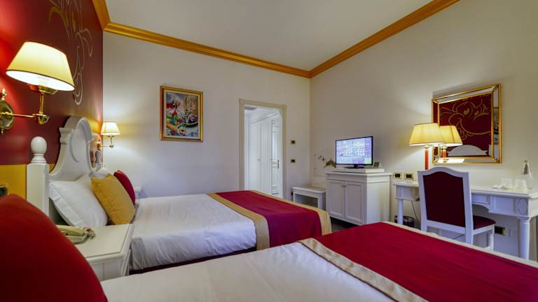 Das Gardaland Hotel bietet insgesamt 247 Zimmer, die in 4 Pavillons nach Märchenthemen gestaltet sind. Jedes Zimmer verfügt über einen Sitzbereich und ein helles Dekor. Einige Zimmer sind thematisch gestaltet und bieten einen Blick auf den Garten. Die Zimmer bieten Komfort und eine einzigartige Atmosphäre für einen angenehmen Aufenthalt.