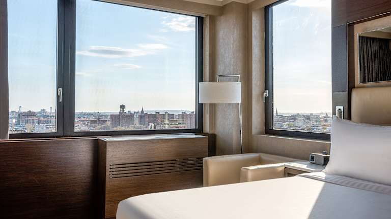 Die 246 Zimmer im Holiday Inn Brooklyn Downtown sind modern und komfortabel eingerichtet. Jedes Zimmer verfügt über einen Schreibtisch, ein Bügeleisen/-brett und ein eigenes Bad mit kostenfreien Pflegeprodukten. Zur weiteren Ausstattung gehören Klimaanlage, Flachbild-TV, WLAN/WiFi (gegen Gebühr), iPod-Dockingstation, Telefon, Safe (gegen Gebühr), kleiner Kühlschrank, Tee- und Kaffeezubereiter.
