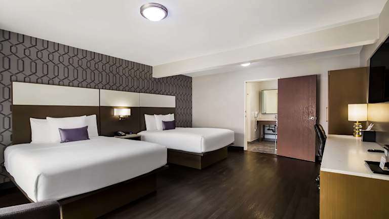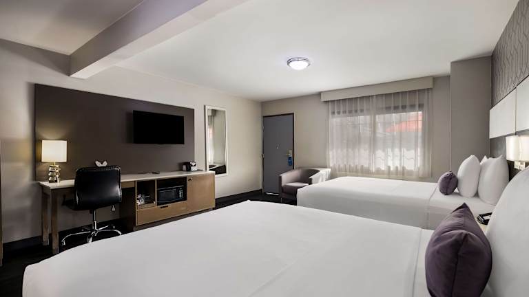 Das Sunset West Hotel, SureStay Collection By Best Western, ist ein komfortables Hotel in idealer Lage am Sunset Boulevard in Hollywood, Kalifornien. Mit kostenfreiem Parken, einem Außenpool und einer Sonnenterrasse bietet das Hotel seinen Gästen eine angenehme Atmosphäre. Die Zimmer sind mit kostenlosem WLAN, Kabel-TV, einer Kaffeemaschine, einem Haartrockner und einem Schreibtisch ausgestattet. Die Rezeption ist rund um die Uhr besetzt und es gibt einen Fax- und Kopierservice sowie einen Aktivitäten- und Tourenschalter. Das Hotel ist nur 6,1 km von den Universal Studios Hollywood entfernt und in der Nähe des Rodeo Drive Einkaufszentrums.