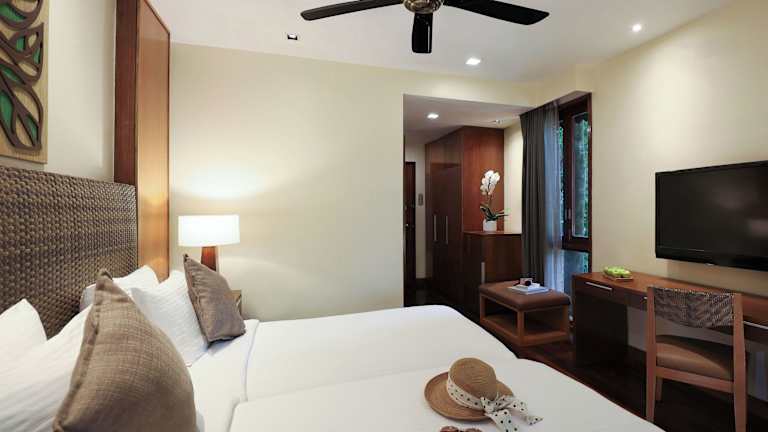 Das Hotel Berjaya Langkawi Resort verfügt über insgesamt 412 Zimmer, die modern und stilvoll eingerichtet sind. Die Zimmer bieten eine komfortable Ausstattung und sind mit Annehmlichkeiten wie Flachbildschirm-TV, Telefon, Kaffee-/Teezubereiter, Safe und Minibar ausgestattet. Die Zimmer verfügen über einen Balkon, von dem aus Sie die Aussicht auf den Garten oder das Meer genießen können. WLAN steht gegen Gebühr zur Verfügung.